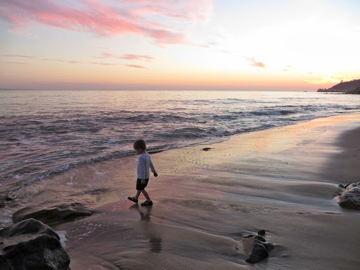 We spent our first afternoon visiting a friend in Malibu. It was little man’s first visit to the ocean, and even though he wasn’t too keen on the idea of touching the water he did have a great time throwing sand into the surf and running from the waves as they came and went.